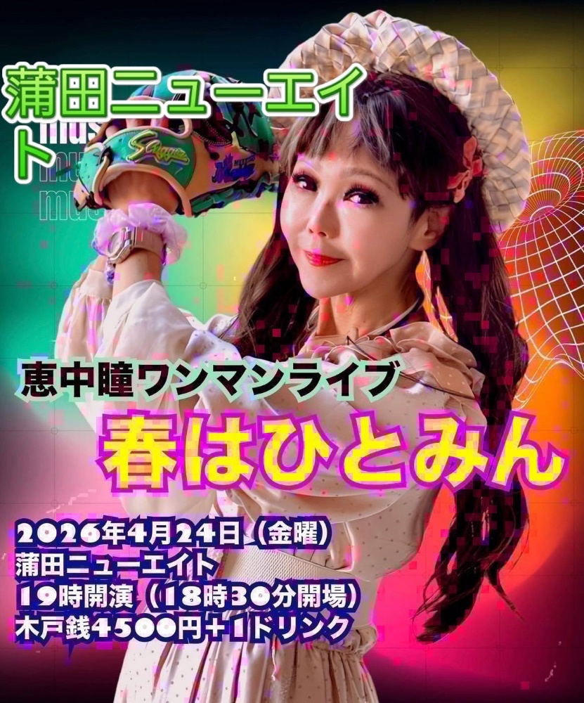 | 4月24日(金) | 蒲田ニューエイト 18:30open 19:00start ¥4000 恵中瞳&ひとみんバンド |